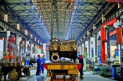 工人在哈電集團(tuán)哈爾濱汽輪機(jī)廠有限責(zé)任公司生產(chǎn)車間內(nèi)進(jìn)行作業(yè)。新華社發(fā)