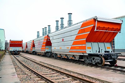 中車齊齊哈爾車輛有限公司生產(chǎn)的煤炭漏斗車。新華社發(fā)