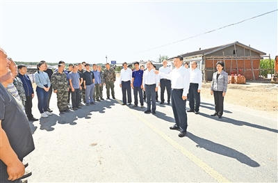 9月6日至8日,中共中央總書記、國(guó)家主席、中央軍委主席習(xí)近平在黑龍江考察。這是7日上午,習(xí)近平在遭受洪澇災(zāi)害的哈爾濱尚志市老街基鄉(xiāng)龍王廟村,同當(dāng)?shù)卮迕窈褪┕と藛T親切交流。新華社記者 謝環(huán)馳攝