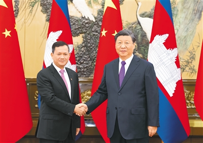 習(xí)近平指出,洪瑪奈首相就任后選擇中國作為第一個進(jìn)行雙邊訪問的國家,充分體現(xiàn)了柬埔寨新一屆政府對鞏固和發(fā)展中柬友好的高度重視。中國和柬埔寨是鐵桿朋友。建交65年來,雙方始終高度互信、平等相待、互利雙贏,始終堅定支持對方維護(hù)國家主權(quán)、安全、發(fā)展利益,這是中柬命運共同體的核心要義。今年,雙方開啟建設(shè)高質(zhì)量、高水平、高標(biāo)準(zhǔn)中柬命運共同體的新時代。中方愿同柬方一道,推動中柬命運共同體建設(shè)走深走實,攜手打造構(gòu)建人類命運共同體的典范。