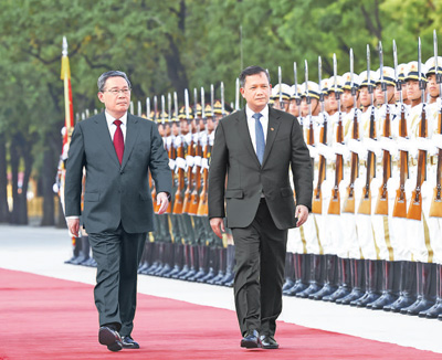 李強(qiáng)指出,中方堅(jiān)定支持柬方維護(hù)國家主權(quán)、安全、發(fā)展利益,探索符合自身國情的發(fā)展道路。中方愿同柬方進(jìn)一步加強(qiáng)發(fā)展戰(zhàn)略對接,充分發(fā)揮兩國政府間協(xié)調(diào)委員會作用,抓好中柬“鉆石六邊”合作架構(gòu)、構(gòu)建新時(shí)代中柬命運(yùn)共同體行動計(jì)劃的落實(shí)落地,推進(jìn)“工業(yè)發(fā)展走廊”和“魚米走廊”建設(shè),推動工業(yè)、農(nóng)業(yè)、經(jīng)貿(mào)等領(lǐng)域合作提質(zhì)升級,取得更多務(wù)實(shí)成果。雙方要繼續(xù)辦好“中柬友好年”系列活動,持續(xù)推進(jìn)衛(wèi)生、教育、文旅等人文交流合作。中方愿同柬方在地區(qū)和國際事務(wù)中繼續(xù)密切配合、相互支持,推動瀾湄合作不斷走深走實(shí),常態(tài)化開展打擊網(wǎng)賭電詐等非傳統(tǒng)安全領(lǐng)域合作,建設(shè)更為緊密的瀾湄國家命運(yùn)共同體。