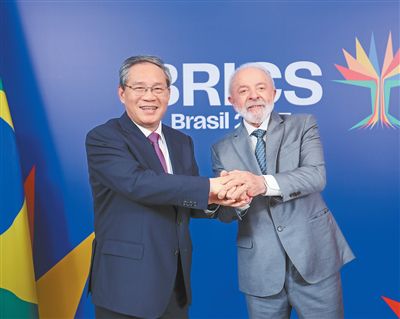 本報里約熱內(nèi)盧7月5日電 (記者陳一鳴、陳尚文)當(dāng)?shù)貢r間7月5日,國務(wù)院總理李強(qiáng)在里約熱內(nèi)盧會見巴西總統(tǒng)盧拉。