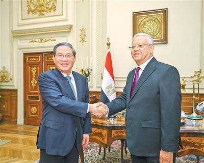 李強(qiáng)表示,中埃雖然相距遙遠(yuǎn),但兩國的友好交往源遠(yuǎn)流長。建交以來,無論國際風(fēng)云如何變幻,中埃傳統(tǒng)友誼的底色不改,兩國關(guān)系與合作發(fā)展的勢頭不減,并且還在持續(xù)煥發(fā)蓬勃生機(jī),展現(xiàn)出強(qiáng)大內(nèi)生動力。中方愿同埃方進(jìn)一步弘揚傳統(tǒng)友誼,增進(jìn)政治互信,堅定支持彼此核心利益與重大關(guān)切,推動兩國關(guān)系不斷邁上新臺階、兩國合作取得更多新成果,更好惠及兩國人民。希望雙方保持立法機(jī)構(gòu)友好往來,加強(qiáng)政策溝通和治國理政經(jīng)驗交流,不斷增進(jìn)相互理解。