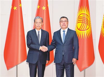 會見扎帕羅夫時,趙樂際首先轉(zhuǎn)達了習(xí)近平主席的親切問候和良好祝愿。趙樂際表示,在兩國元首親自關(guān)心和推動下,中吉關(guān)系實現(xiàn)跨越式發(fā)展,處于歷史最好時期。中方愿同吉方一道,遵循兩國元首的戰(zhàn)略引領(lǐng),弘揚傳統(tǒng)友誼,增進戰(zhàn)略互信,在涉及彼此核心利益問題上堅定相互支持;擴大貿(mào)易投資規(guī)模,高質(zhì)量推進中吉烏鐵路建設(shè),加強在跨境公路修建、口岸現(xiàn)代化改造、數(shù)字貿(mào)易、綠色能源等領(lǐng)域合作;促進人文交流,共同推動民生項目落地見效,不斷充實中吉新時代全面戰(zhàn)略伙伴關(guān)系內(nèi)涵。中方愿同包括吉方在內(nèi)的中亞國家一道,弘揚“中國—中亞精神”,以“中國中亞合作高質(zhì)量發(fā)展年”為契機,實施更多合作舉措和項目,推動構(gòu)建更加緊密的中國—中亞命運共同體。要持續(xù)深化執(zhí)法安全合作,堅決打擊“三股勢力”,共同維護地區(qū)安全穩(wěn)定。