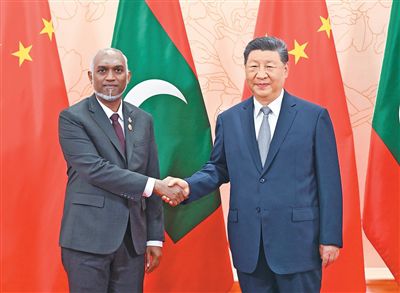 本報(bào)天津8月31日電(記者王遠(yuǎn)、宦翔)8月31日上午,國(guó)家主席習(xí)近平在天津迎賓館會(huì)見來華出席2025年上海合作組織峰會(huì)和紀(jì)念中國(guó)人民抗日戰(zhàn)爭(zhēng)暨世界反法西斯戰(zhàn)爭(zhēng)勝利80周年活動(dòng)的馬爾代夫總統(tǒng)穆伊茲。