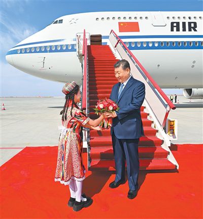 9月23日下午,中共中央總書(shū)記、國(guó)家主席、中央軍委主席習(xí)近平率中央代表團(tuán)乘專機(jī)抵達(dá)烏魯木齊,出席新疆維吾爾自治區(qū)成立70周年慶?;顒?dòng)。習(xí)近平等在機(jī)場(chǎng)受到新疆各族群眾的熱烈歡迎。