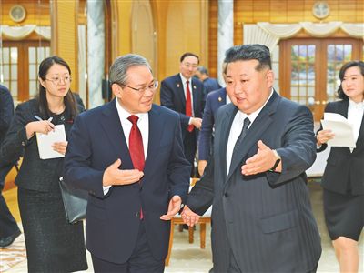 當(dāng)?shù)貢r(shí)間10月9日下午,中共中央政治局常委、國務(wù)院總理李強(qiáng)在平壤朝鮮勞動(dòng)黨中央委員會(huì)會(huì)見朝鮮勞動(dòng)黨總書記、國務(wù)委員長金正恩。