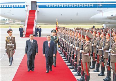 當?shù)貢r間10月9日中午,李強乘包機抵達平壤順安國際機場。朝鮮勞動黨中央政治局常委、內閣總理樸泰成率黨和政府高級官員到機場迎接,并為李強舉行歡迎儀式。李強在樸泰成陪同下檢閱了儀仗隊。中國駐朝鮮大使王亞軍也到機場迎接。