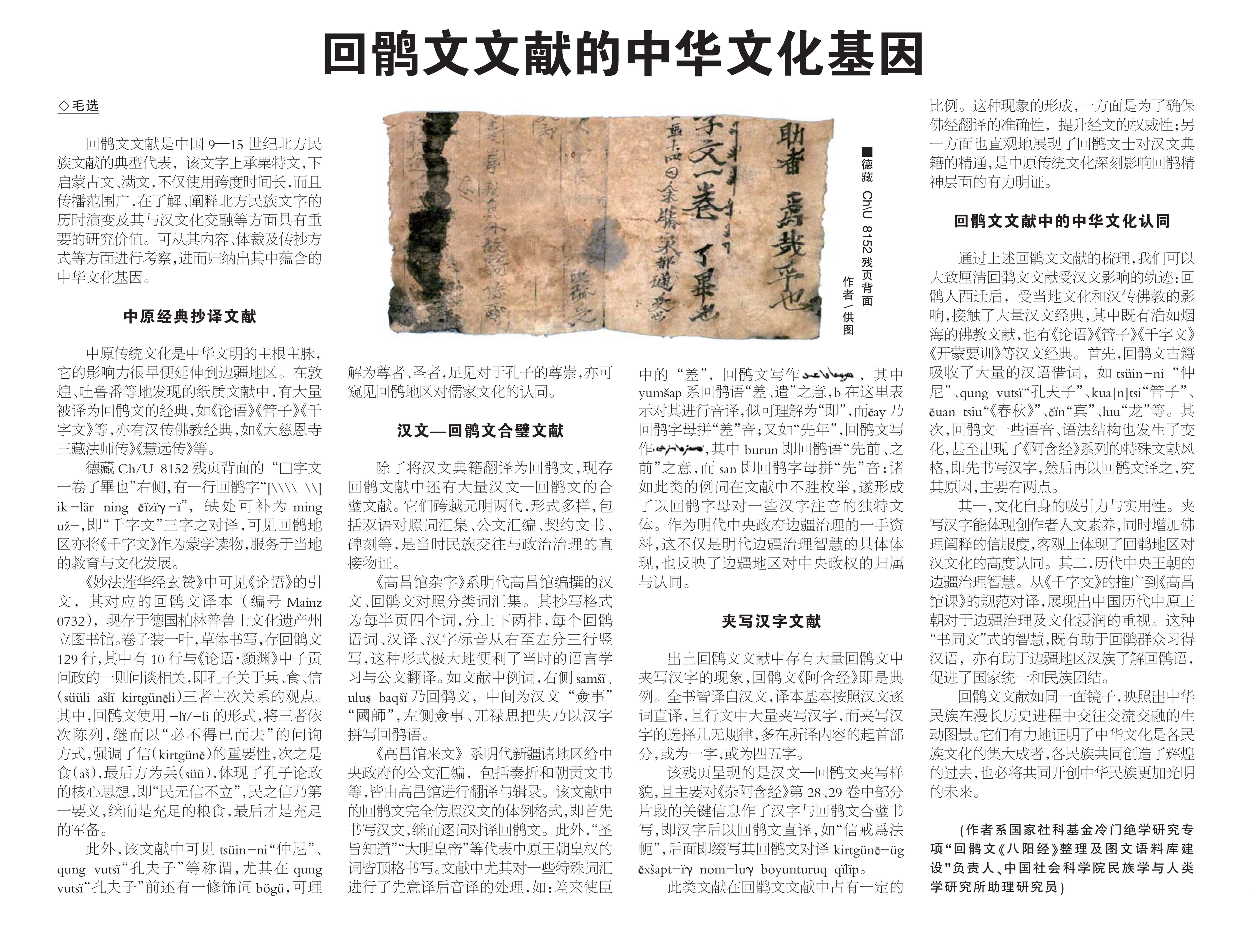 毛選:回鶻文文獻的中華文化基因