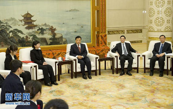 12月17日,中共中央政治局常委劉云山在北京人民大會堂會見羅陽同志先進事跡報告團成員。 新華社記者 黃敬文攝