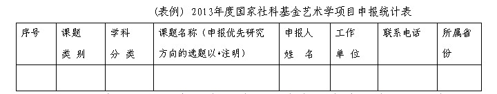 《2013年度國(guó)家社會(huì)科學(xué)基金藝術(shù)學(xué)項(xiàng)目課題指南》經(jīng)文化部和全國(guó)藝術(shù)科學(xué)規(guī)劃領(lǐng)導(dǎo)小組批準(zhǔn),即日發(fā)布,全國(guó)藝術(shù)科學(xué)規(guī)劃領(lǐng)導(dǎo)小組辦公室同時(shí)開(kāi)始受理2013年度國(guó)家社會(huì)科學(xué)基金藝術(shù)學(xué)項(xiàng)目申報(bào),F(xiàn)將申報(bào)工作的有關(guān)事項(xiàng)公告如下: