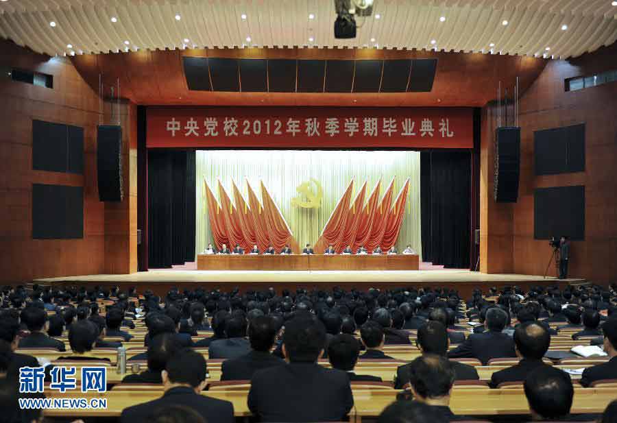 1月15日,中共中央黨校舉行2012年秋季學(xué)期畢業(yè)典禮。中共中央政治局常委、中央黨校校長劉云山出席畢業(yè)典禮,并為學(xué)員頒發(fā)畢業(yè)證書。新華社記者謝環(huán)馳攝