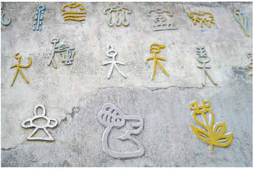 圖為東巴經(jīng)書象形文字春夏秋冬:春風(fēng)、夏雨、秋花、冬雪。納西東巴教的突出特點是自然崇拜與多神崇拜,記載于東巴經(jīng)書的文字有二千四百個左右。記者 劉芳\攝