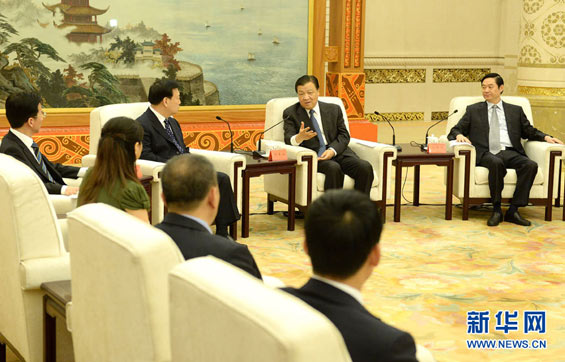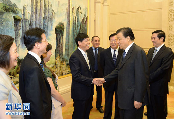 6月21日,中宣部、浙江省委在北京人民大會(huì)堂舉行杭州“最美現(xiàn)象”思想道德建設(shè)先進(jìn)經(jīng)驗(yàn)報(bào)告會(huì)。報(bào)告會(huì)前,中共中央政治局常委、中央書(shū)記處書(shū)記劉云山會(huì)見(jiàn)報(bào)告團(tuán)成員。劉建生 攝