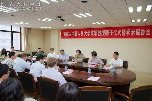 6月21日下午,外交部副部長謝杭生受聘中國人民大學(xué)兼職教授。中國人民大學(xué)黨委書記靳諾出席聘任儀式并頒發(fā)聘書。