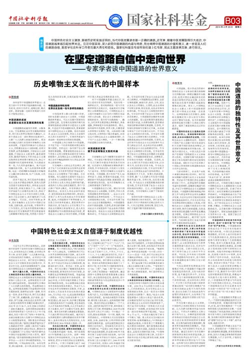 編者按:中國(guó)特色社會(huì)主義道路,是被歷史和實(shí)踐證明的、當(dāng)代中國(guó)發(fā)展進(jìn)步唯一正確的道路。近年來(lái),隨著中國(guó)發(fā)展取得巨大成功,中國(guó)道路越來(lái)越引起世界關(guān)注。立足中國(guó)實(shí)際,深入研究中國(guó)道路的內(nèi)涵與特質(zhì),充分闡釋中國(guó)道路的價(jià)值和意義,進(jìn)一步堅(jiān)定人們的道路自信,是哲學(xué)社會(huì)科學(xué)工作者的重大責(zé)任和使命。國(guó)家社科基金專版特別約請(qǐng)3位專家,就此主題發(fā)表文章,進(jìn)行探討
