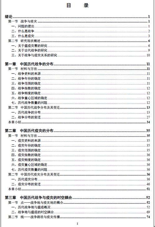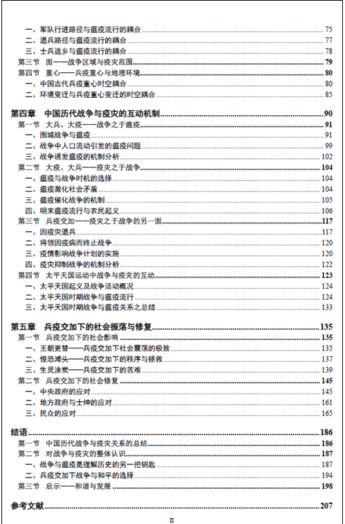 圖5 《戰(zhàn)爭與疫災—基于中國歷史的考察》目錄