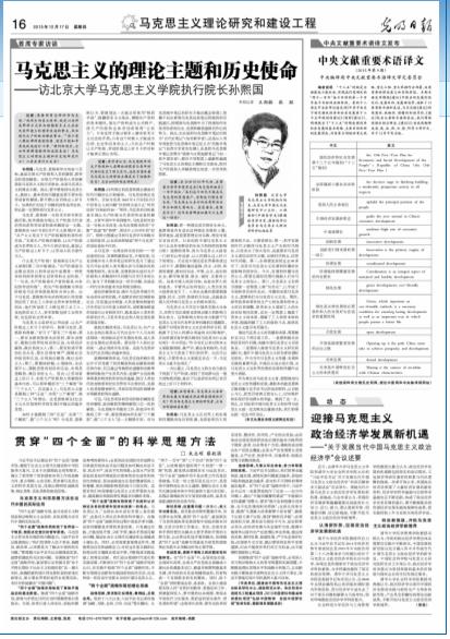 馬克思主義的理論主題和歷史使命——訪北京大學(xué)馬克思主義學(xué)院執(zhí)行院長孫熙國
