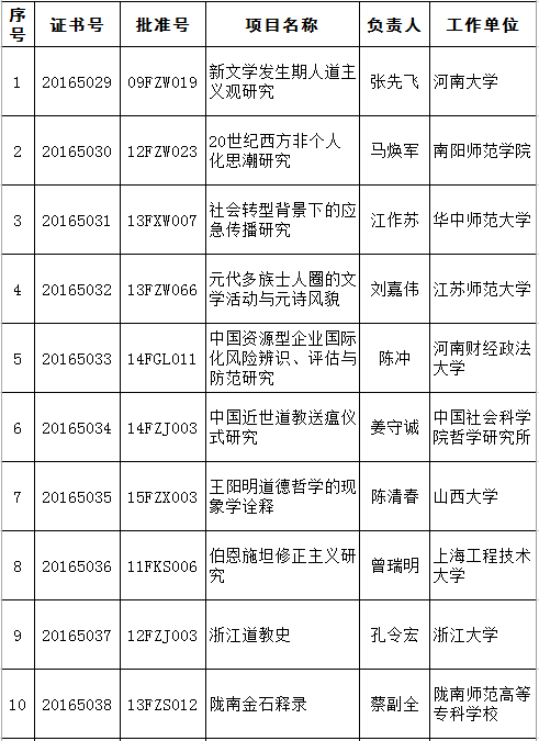 2016年3月國家社科基金后期資助項目結(jié)項名單