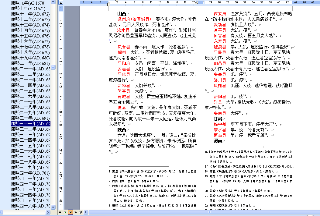 本子課題目前主要在開展的工作包括:匯總整理前期研究成果,完成《中國疫災地理規(guī)律研究》書稿;修訂中國歷史時期疫災地理分布圖組。