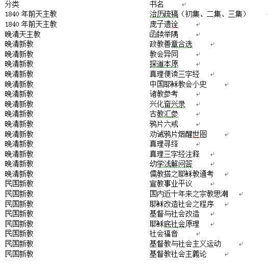 (2)漢語基督教文獻(xiàn)書目的梳理,是認(rèn)識基督教中國化的基礎(chǔ)。在充分利用漢