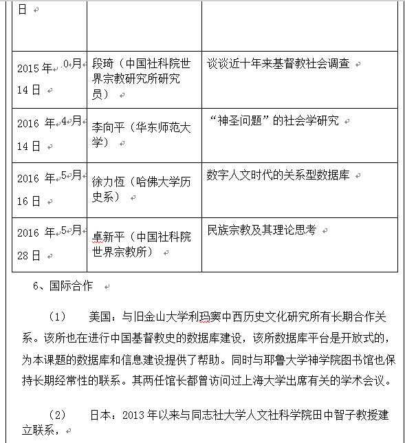 ⑥ 基督教文獻(xiàn)書目數(shù)據(jù)庫”,并與該所達(dá)成了交流彼此的漢語基督教文獻(xiàn)信息的協(xié)議。