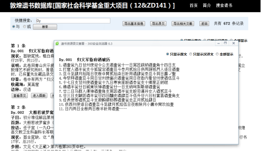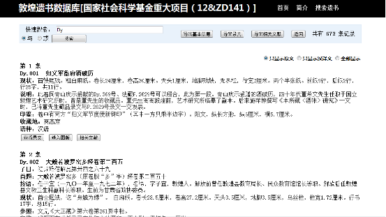 3、開發(fā)完成了敦煌遺書數(shù)據(jù)庫管理系統(tǒng)