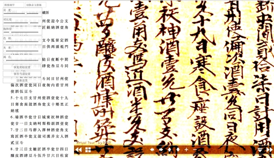 建成了敦煌遺書數(shù)據(jù)庫(二期),包括敦煌遺書數(shù)據(jù)庫軟件系統(tǒng)和遺書數(shù)據(jù)兩部分:敦煌數(shù)據(jù)庫軟件系統(tǒng)為敦煌遺書的錄入、檢索瀏覽、輸出等管理與使用提供支持,具體包括以下功能:1)數(shù)據(jù)錄入功能:支持基于文檔表格的批量導(dǎo)入、單個(gè)手工錄入、修訂、刪除等;2)檢索瀏覽功能:支持針對(duì)數(shù)據(jù)庫的統(tǒng)一全文檢索,并支持基于各元數(shù)據(jù)字段的單個(gè)/多個(gè)并發(fā)條件檢索,支持遺書圖像的放、縮與快速瀏覽,支持圖像與錄文的對(duì)照瀏覽,支持錄文豎排顯示,支持在對(duì)照瀏覽的同時(shí)進(jìn)行圖像參數(shù)的調(diào)節(jié);3)輸出功能:按照用戶的要求輸出各種規(guī)格/類型的圖像/文字/文檔/報(bào)表等。4)數(shù)據(jù)庫維護(hù)功能,為其它子課題的建庫提供輔助支持。5)保存與讀取功能:可保存用戶對(duì)圖像進(jìn)行的調(diào)節(jié)結(jié)果,方便用戶下次瀏覽時(shí)直接讀取上次調(diào)節(jié)的參數(shù)。