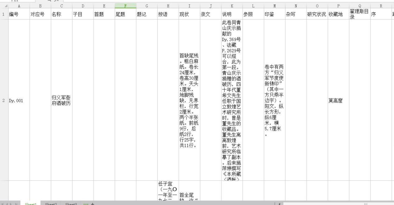 1、已完成子項(xiàng)目敦煌文獻(xiàn)研究論著目錄數(shù)據(jù)庫元數(shù)據(jù)的整理。按照數(shù)據(jù)庫建庫要求,對(duì)元數(shù)據(jù)進(jìn)行逐條逐項(xiàng)針對(duì)性處理,達(dá)到批量帶入數(shù)據(jù)庫的要求,并在今年1月,赴浙江大學(xué),討論完善數(shù)據(jù)庫建庫中二級(jí)庫建設(shè)的具體問題。主要內(nèi)容如下: