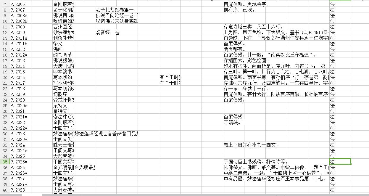 1)、法藏文文獻(xiàn)P.t1299—P.t3615號(hào)目錄題記進(jìn)行整理和錄入,約。