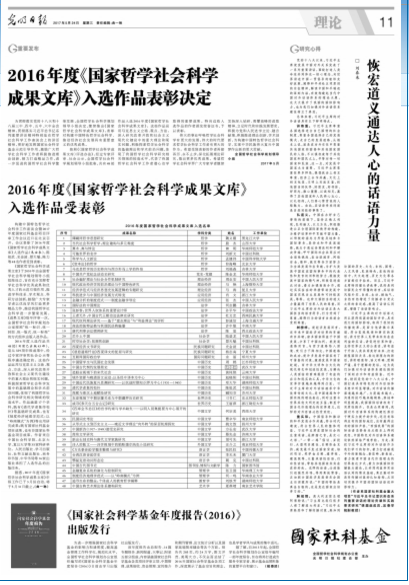 2016年度《國家哲學(xué)社會科學(xué)成果文庫》入選作品受表彰