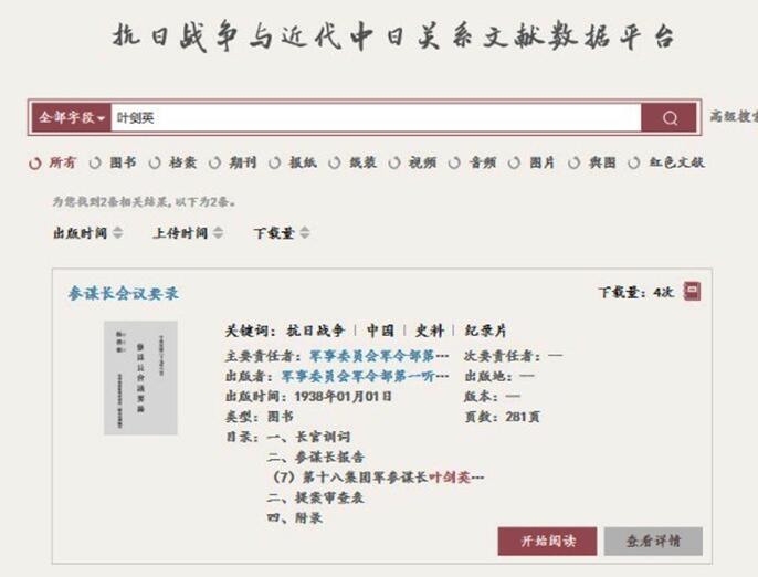 由中國社會科學(xué)院、國家圖書館及國家檔案局牽頭的國家社科基金抗日戰(zhàn)爭研究專項(xiàng)工程項(xiàng)目“抗日戰(zhàn)爭與近代中日關(guān)系文獻(xiàn)數(shù)據(jù)平臺”(網(wǎng)址:http://www.modernhistory.org.cn),于10月中旬正式上線試運(yùn)行。