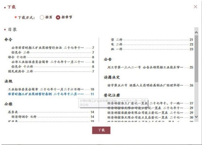 圖7下載界面,圖書可按章節(jié),期刊可按篇單獨(dú)下載,下載150DPI高清圖像。