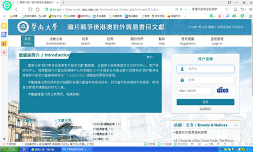 一個(gè)對課題組成員開放的內(nèi)部數(shù)據(jù)庫--“鴉片戰(zhàn)爭后港澳對外貿(mào)易文獻(xiàn)”數(shù)據(jù)庫,目前收錄文獻(xiàn)、資料、研究成果,檔案資料等600條。