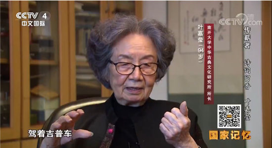 央視節(jié)目《國家記憶》欄目特別節(jié)目《傳薪者》:第四集 詩詞留香 葉嘉瑩
