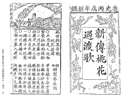 《新傳桃花過渡歌》清道光丙戌年(1826)封面及正文,現(xiàn)藏于臺(tái)灣地區(qū)某圖書館。