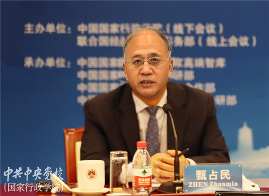 中國國家行政學(xué)院副院長甄占民出席線下會議并致辭。甄占民指出,消除貧困是人類的共同使命,對于廣大發(fā)展中國家而言,消除貧困更是國家治理面臨的重大挑戰(zhàn)和緊迫任務(wù)。中國共產(chǎn)黨和中國政府始終把消除貧困、改善民生和實現(xiàn)人民共同富裕作為重要奮斗目標,始終是世界減貧事業(yè)的積極倡導(dǎo)者和有力推動者。新中國成立71年來,經(jīng)過艱苦卓絕的努力和奮斗,中國人民創(chuàng)造了人類減貧史上的奇跡,中國成為世界上減貧人口最多和率先完成聯(lián)合國千年發(fā)展目標的發(fā)展中國家。甄占民強調(diào),中國脫貧攻堅取得的歷史性成就,得益于中國共產(chǎn)黨的堅強領(lǐng)導(dǎo)和中國特色社會主義制度的獨特優(yōu)勢。我們舉全國之力打響脫貧攻堅戰(zhàn),做到了積極作為、精準施策,強調(diào)扶貧對象精準、措施到戶精準、項目安排精準、資金使用精準、因村派人精準、脫貧成效精準,在發(fā)揮公共機構(gòu)在貧困治理中的作用方面進行了卓有成效的探索和實踐。中國式扶貧之路為發(fā)展中國家結(jié)合自身國情,根據(jù)各自發(fā)展階段和發(fā)展模式探索減貧之路提供了有益參考和借鑒。他指出,當(dāng)今中國,正站在實現(xiàn)“兩個一百年”奮斗目標歷史交匯點上,即將迎來國民經(jīng)濟和社會發(fā)展“十四五”新發(fā)展時期,進入新發(fā)展階段。中國針對絕對貧困的脫貧攻堅舉措將逐步調(diào)整為針對相對貧困的日常性幫扶措施,并納入正在推進的鄉(xiāng)村振興戰(zhàn)略架構(gòu)進行統(tǒng)籌安排。中國政府提出加快形成以國內(nèi)大循環(huán)為主體、國內(nèi)國際雙循環(huán)相互促進的新發(fā)展格局,也為深入推進減貧事業(yè)提供了新的歷史機遇。甄占民強調(diào),“志合者,不以山海為遠”。面對消除貧困和實現(xiàn)可持續(xù)發(fā)展目標的共同使命,世界各國特別是發(fā)展中國家更需要加強交流、深化合作。面對不確定不穩(wěn)定的世界百年未有之大變局,國際社會更應(yīng)秉持人類命運共同體的理念,深化減貧領(lǐng)域國際交流與合作,充分發(fā)揮政府、市場、社會和國際組織在減貧事業(yè)中的作用,共創(chuàng)人類可持續(xù)發(fā)展的美好未來。