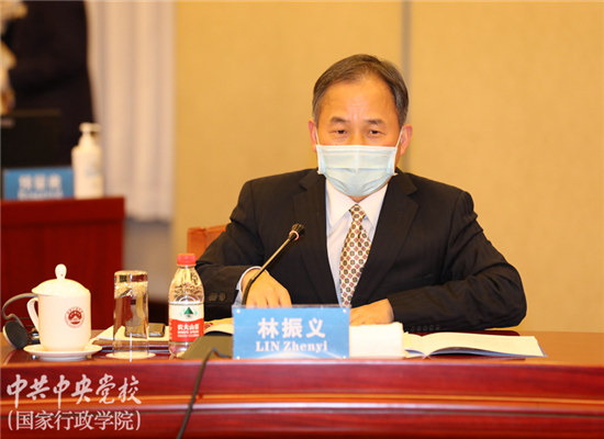 中國國家行政學(xué)院科研部主任林振義主持主旨演講環(huán)節(jié)。