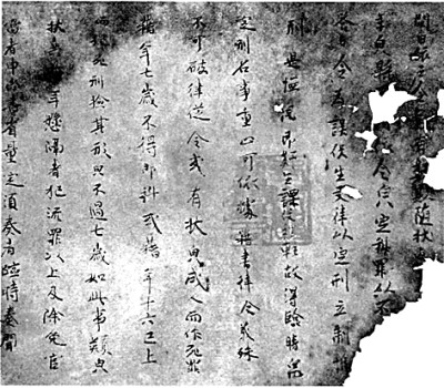 《唐律疏議》充分體現(xiàn)了中國古代法律制度的水平、風格和基本特征,是中華法系的代表性法典之一。圖為其殘片(局部)。
