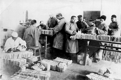 1930年,單士元(右二)和大家一起整理清代檔案。資料圖片