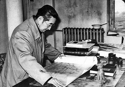 20世紀(jì)80年代,單士元在審查故宮工程圖紙。資料圖片