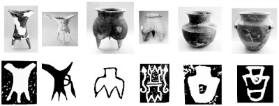 一類刻畫于陶器上,主要發(fā)現(xiàn)于鄭州商城遺址。二里崗下層一期和下層二期的大口尊口沿內(nèi)側(cè)發(fā)現(xiàn)有數(shù)十種此類陶文:有些是記數(shù)的數(shù)字,如“一、二、三、四、五、六、七、十”等;有些是象形字,如“矢、木、網(wǎng)、黽、臣、鳥”等。