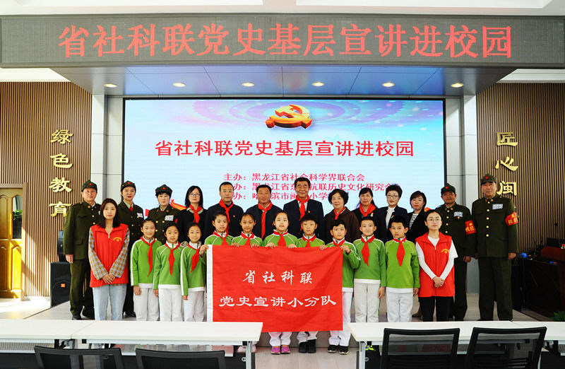 活動(dòng)現(xiàn)場(chǎng)舉行了黨史基層宣講啟動(dòng)儀式。省社科聯(lián)副主席計(jì)世偉致辭,省社科聯(lián)黨組書記、副主席劉德權(quán)與計(jì)世偉向宣講專家代表李兆麟將軍的孫女李海濱、省委黨校黨史黨建教研部副教授張磊等授旗。省社科聯(lián)科普部部長(zhǎng)馬琳與李海濱向閩江小學(xué)贈(zèng)送了“慶祝中國(guó)共產(chǎn)黨成立100周年·紅色經(jīng)典連環(huán)畫”叢書、“龍江講壇系列講座”叢書、新型冠狀病毒防疫科普手冊(cè)等普及讀物,參加活動(dòng)的東北抗聯(lián)精神藝術(shù)團(tuán)演唱了抗聯(lián)歌曲《露營(yíng)之歌》。