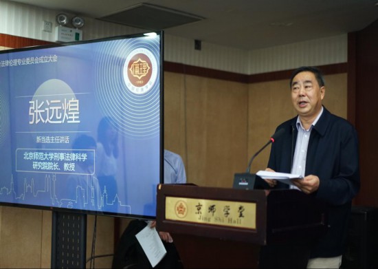 (北京師范大學(xué)刑事法律科學(xué)研究院院長(zhǎng)張遠(yuǎn)煌在發(fā)言。北師大刑事法律研究院供圖)