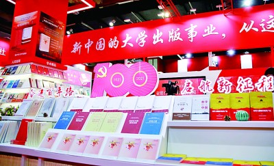 2021北京圖書訂貨會(huì)上的慶祝建黨100周年主題圖書展區(qū)。新華社發(fā)