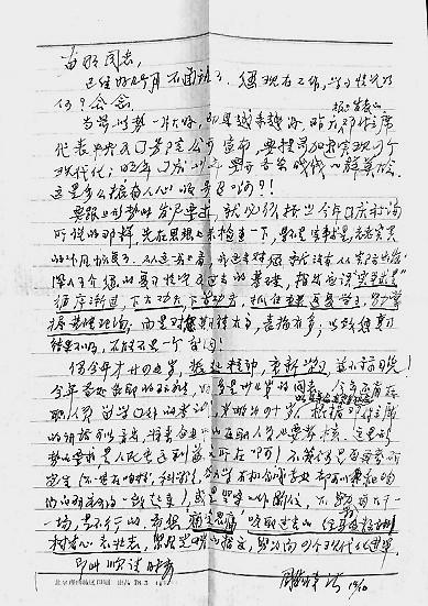 “你應(yīng)該挖掘自己的潛力,在遇到困難的時(shí)候有戰(zhàn)勝困難的決心,要靠自己。”在李奮明的回憶中,導(dǎo)師周發(fā)岐時(shí)常這樣勉勵自己。李奮明比周發(fā)岐小57歲,兩人卻成了忘年交。李奮明畢業(yè)后被分配到了內(nèi)蒙古某工廠,曾有一段時(shí)間,因?yàn)闂l件艱苦,工作也遇到瓶頸,自己有了畏難情緒。此時(shí),遠(yuǎn)在北京的周老師堅(jiān)持每半個(gè)月給他寫一封信,送來關(guān)心和鼓勵!皼]有周老師,就沒有我的今天!贝撕,李奮明發(fā)奮工作,因表現(xiàn)出色,被調(diào)到北京工作,擁有了更廣闊的人生舞臺。當(dāng)他向老師報(bào)喜時(shí),周發(fā)岐只是笑著對他說:“你的愿望實(shí)現(xiàn)了,我的愿望也實(shí)現(xiàn)了!
