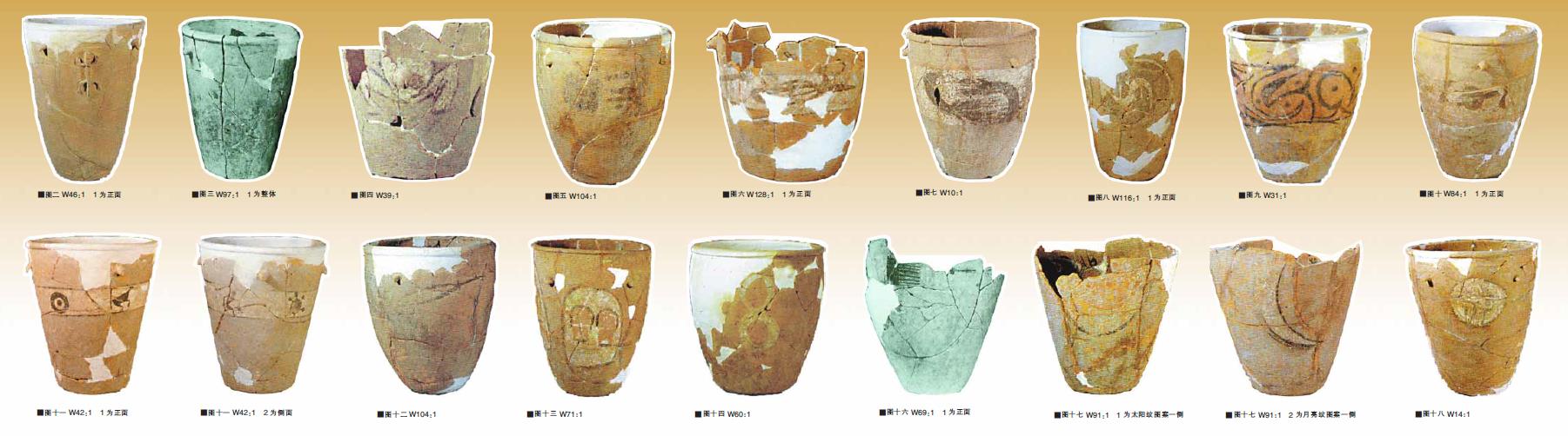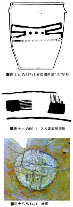 (二)人體局部形象。多表現(xiàn)四肢與眼睛。陶缸W104:1上腹部的彩繪圖案呈“