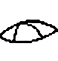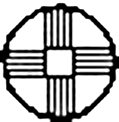 ”形陶器繪符圖案,施于陶缸外壁。用棕彩顏料繪制在白色底色之上,其中從中部方孔向圓邊伸展的線條纖細(xì)而整齊,說明其繪制的技法很精湛,或者就是用一個模型繪制了四組整齊排列的細(xì)線,每組細(xì)線有7—8根。該符號在東巴文中也為太陽的意思(圖十八W14:1)。