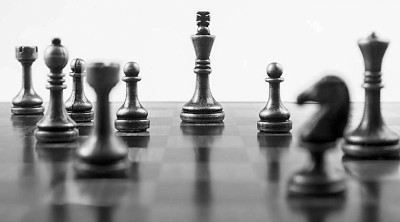 源于東方、興于歐洲的國(guó)際象棋則顯露出不一樣的價(jià)值原理和行動(dòng)邏輯,推崇以結(jié)果效能為核心評(píng)判標(biāo)準(zhǔn)的思想,約束較少。例如至高無(wú)上的王可以在棋盤(pán)上的任意位置行動(dòng),經(jīng)常還需要御駕親征一線(xiàn),承擔(dān)戰(zhàn)斗主力軍的職責(zé)。兵在國(guó)際象棋中原本也是個(gè)“凡夫俗子”,能量最小。但當(dāng)兵沖破重重阻力成功抵達(dá)對(duì)方棋盤(pán)底線(xiàn)時(shí),這個(gè)兵便可以升變?yōu)橥踔獾娜魏纹遄,“鳥(niǎo)槍換炮”華麗轉(zhuǎn)身,取得榮耀戰(zhàn)功。