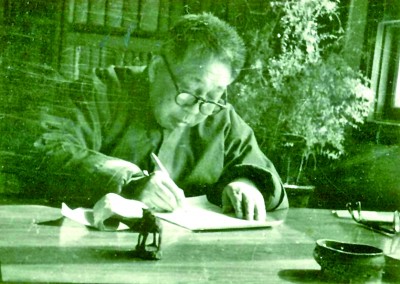 父親這次東歸是當(dāng)年10月2日到達(dá)上海,再到北平。10月下旬,父親回到闊別10年的家鄉(xiāng)看望了時(shí)時(shí)在念中的慈母。1933年年底,他從山村回到北平。12月,父親受聘為北平中法大學(xué)伏爾泰學(xué)院教授,講授法國(guó)文學(xué)一個(gè)學(xué)期。這時(shí)父親剛30歲,正是而立之年。他一生都在高校工作,沒有做過助教、講師、副教授,而是直接成為教授。